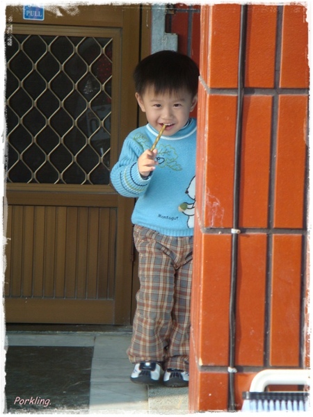 小姪子被姨婆及他媽咪唸了一下… 不淮他再來抱心語,