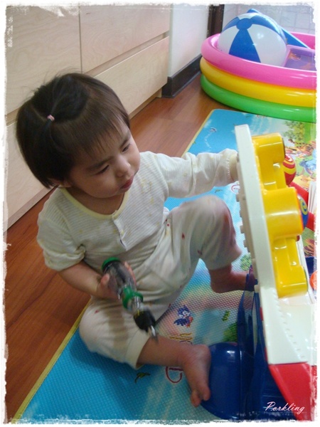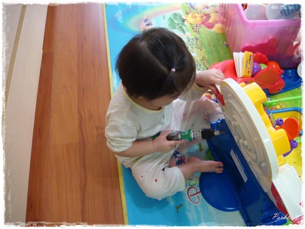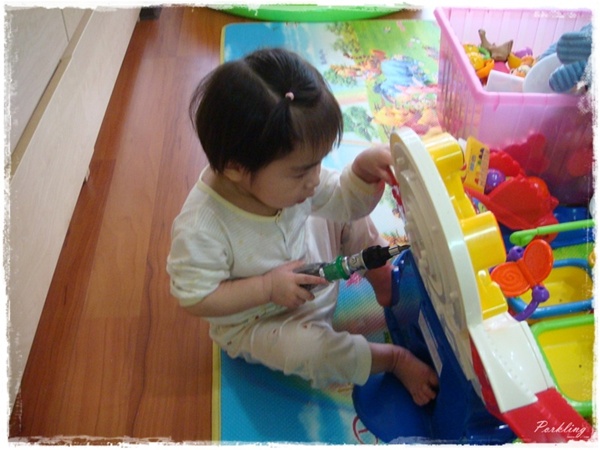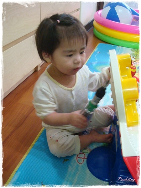 全職媽媽的我... 有需要時總是會自己DIY的修理一些東西, 心語也是會張大眼的看我在幹嘛~