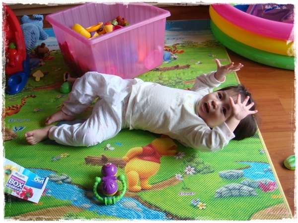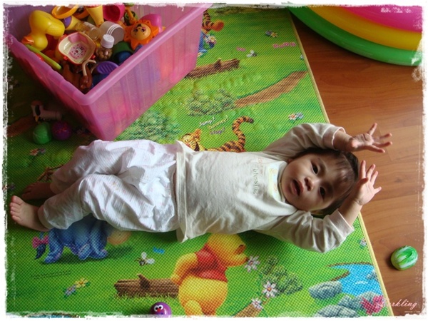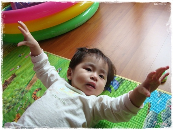 就給我躺在地上.. 做著動作喊著YA~ 給我拍她... 真好玩~